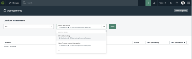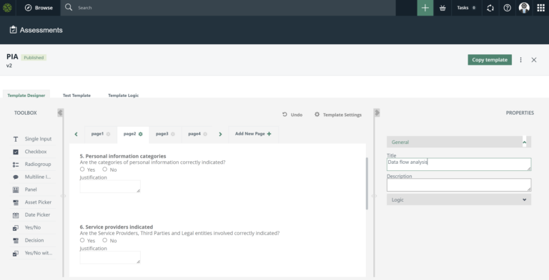 Next on the list of requirements to be met by September 2023 are impact assessments. You will need to ensure that you have the means to conduct assessments of privacy-related factors affecting systems/data where personal information is a concern. Collibra Privacy boasts an integrated assessments feature, which can be enabled to address requirements stipulated in Section 63.5 of Bill 64. This feature comes out-of-the-box with highly customizable, expert-built templates and allows you to automatically trigger assessment workflows and notify internal stakeholders to close compliance gaps from high-risk processing activities: